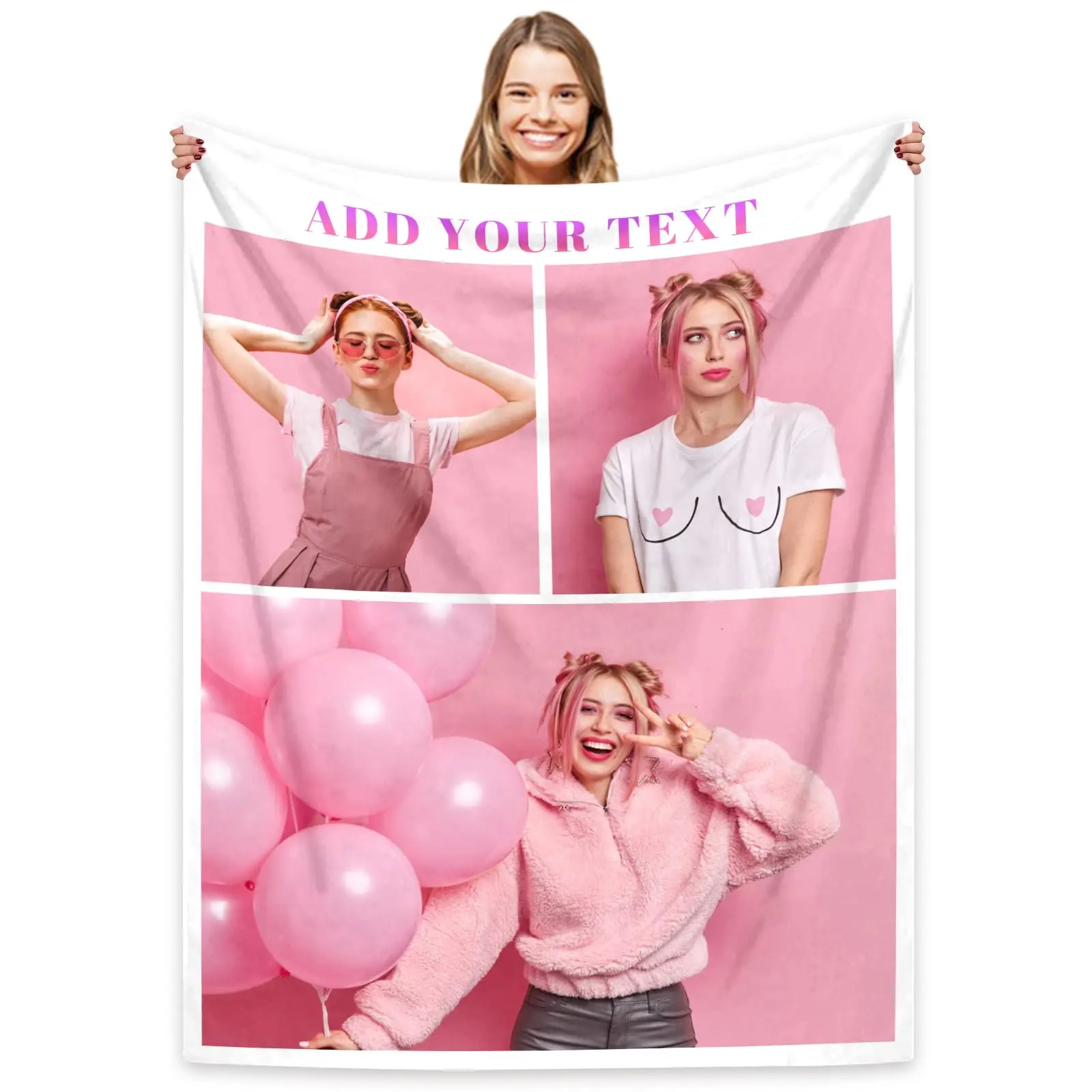 1pc Customized Blanket Your Design Logo Family Photo Print Warm Smooth Blanket Custom for Lover Dad Mom for Winter New Year Gift