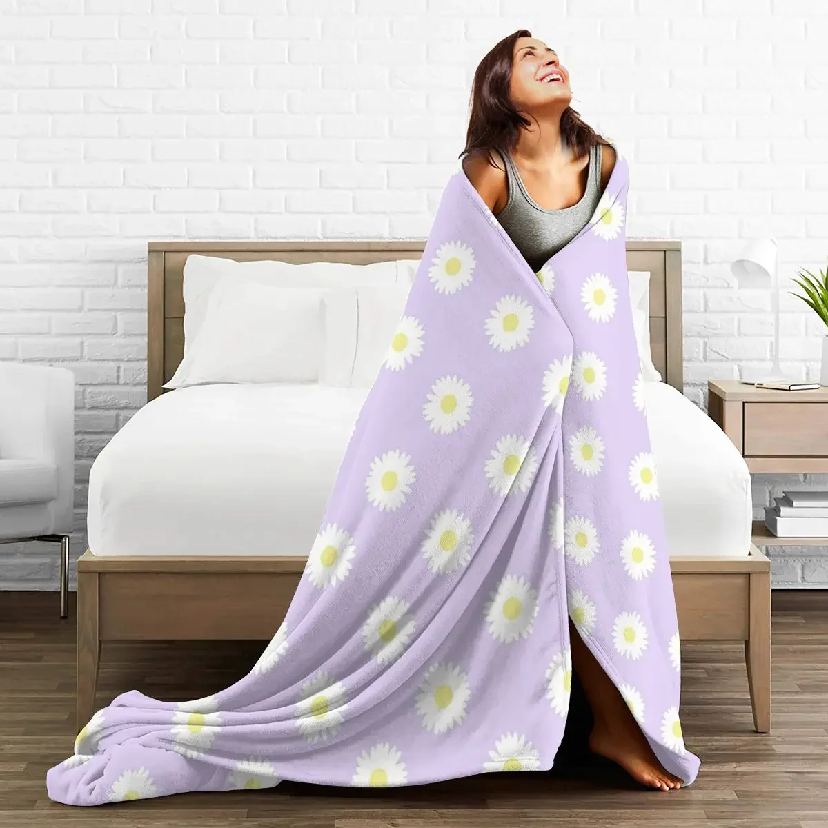 Daisy Purple Pastel Aesthetic Cute Daisies Flower Cottagecore Blankets Soft Warm Flannel Throw Blanket Cover for Bed Home Sofa