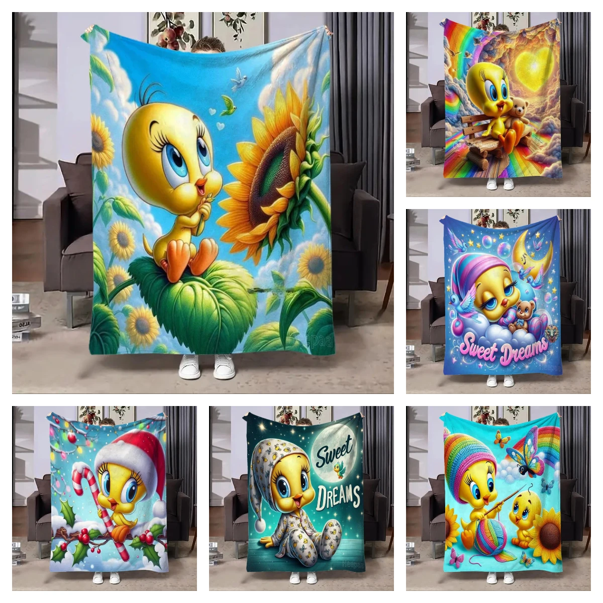 Tweety Bird With Flowers Butterfly Flannel Blanket Fluffy Children Adults Sofa Plush Bedspread Throw Lunch Blanket for Sofa Bed