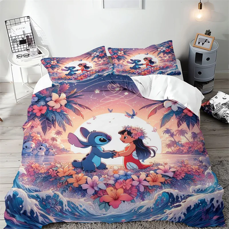 Duvet Cover Cartoon Stitch Flower Wave New Fashion Design Bedding Set Quilt Cover Pillowcase Children Bedding Bedroom Decoration