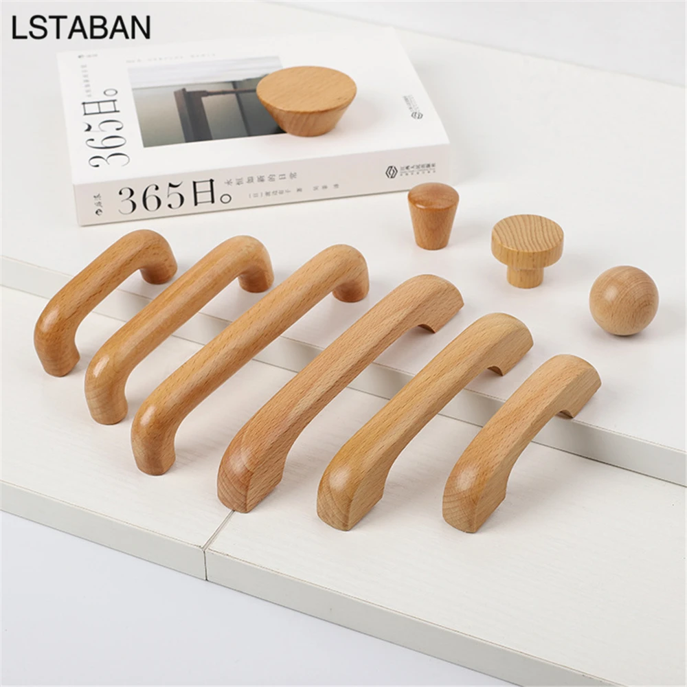 Solid Wood Kitchen Cabinet Handle Beech Varnish Furniture Wooden Door Drawer Knobs Cupboard Pull Handle for Hardware Accessories