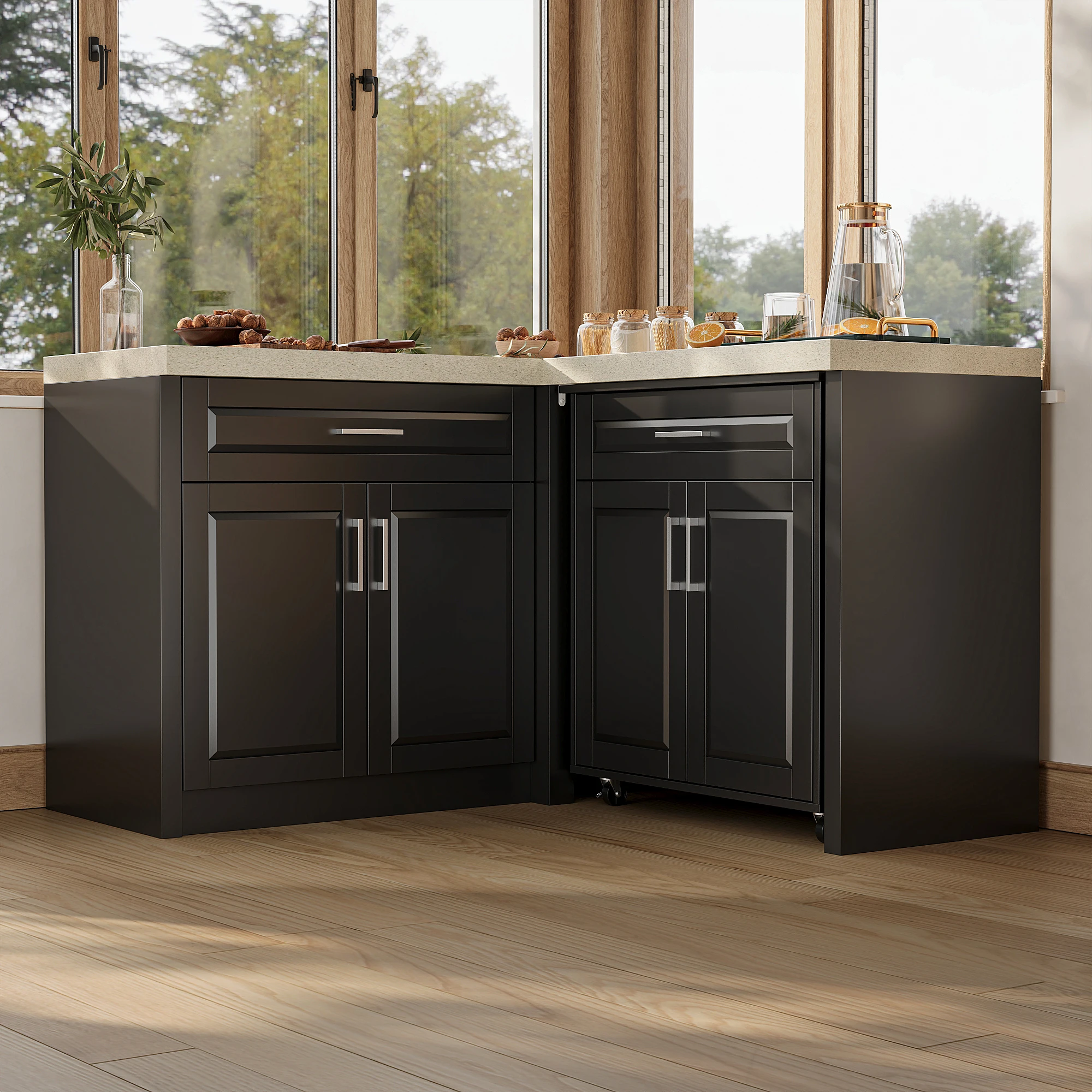 FUFU&GAGA Modern 4-door pantry cabinet with 2 drawers & 4 compartments, L-shaped kitchen cabinet with spacious countertop, black  Read more