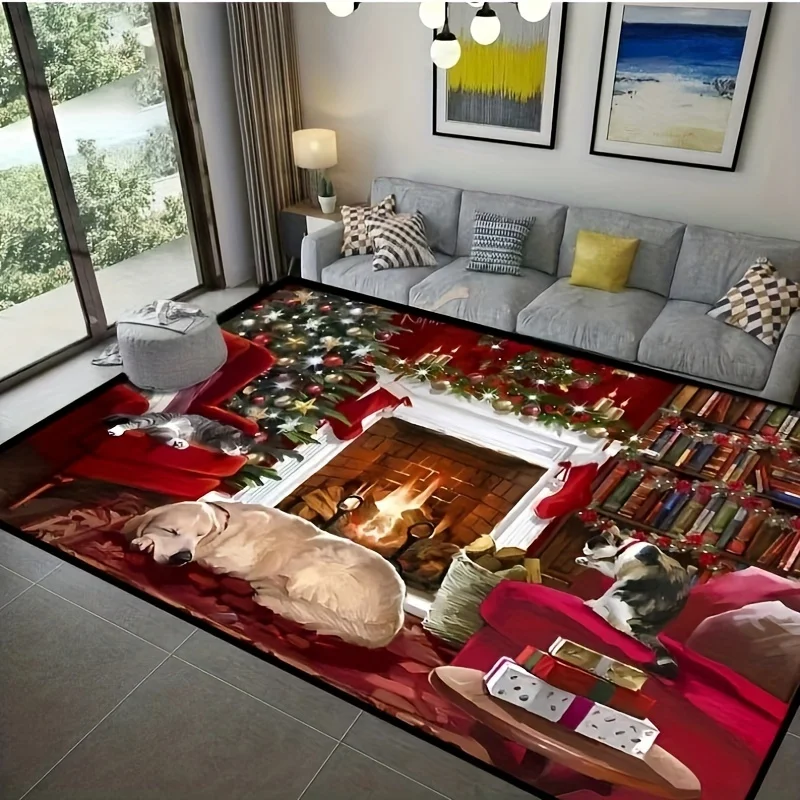 VIKAMA Christmas-Themed Rug For Living Room, Home Decor, Vacation Home, Christmas Decorations-Non-Slip, Soft, Machine-Washable