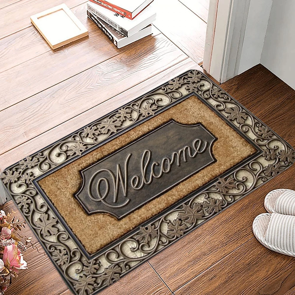 Welcome Cobblestone Carpet 3D Stone Pattern Rug for Home Outdoor Decor Perfect for Entrance Living Room Bathroom Balcony Mat
