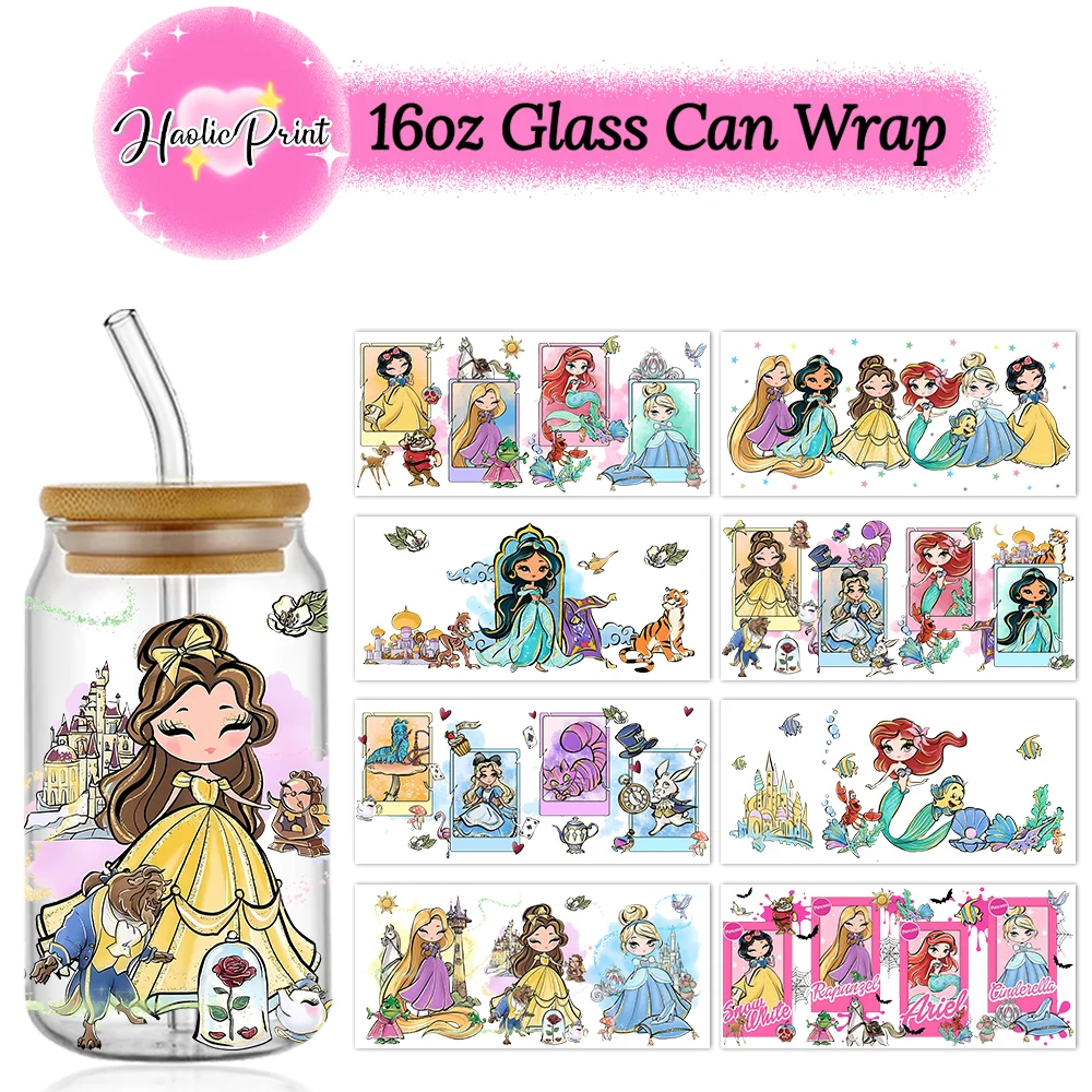Disney Inspired Princess 16oz Libbey Glass Can UV DTF Wrap DIY Libbey Glass Can UV DTF Transfer Senior 3D Sticker Bad Witches