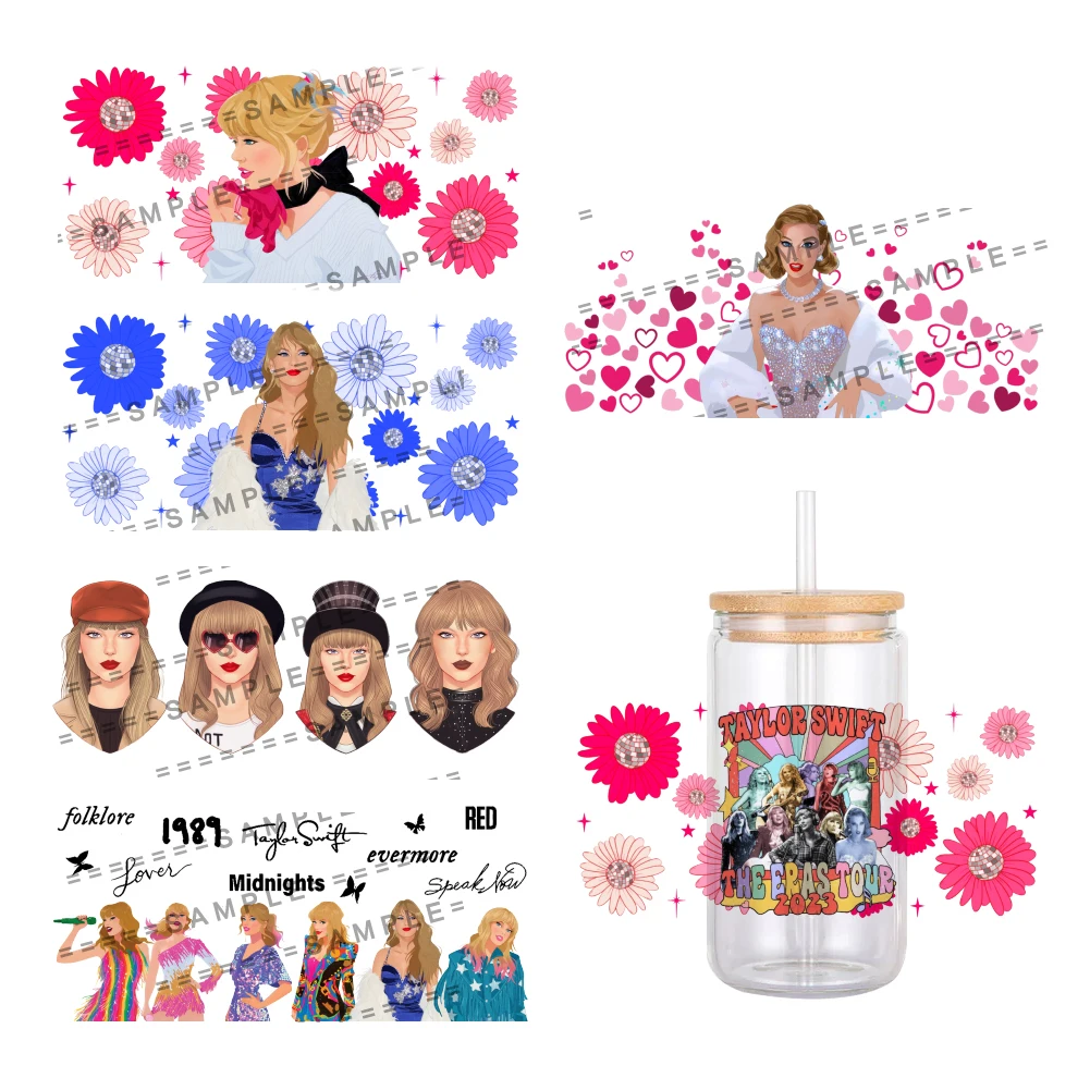 Famous Singer Girl Pattern UV DTF Transfer Sticker Waterproof Transfers Decals For 16oz Glass Cup Wrap Stickers