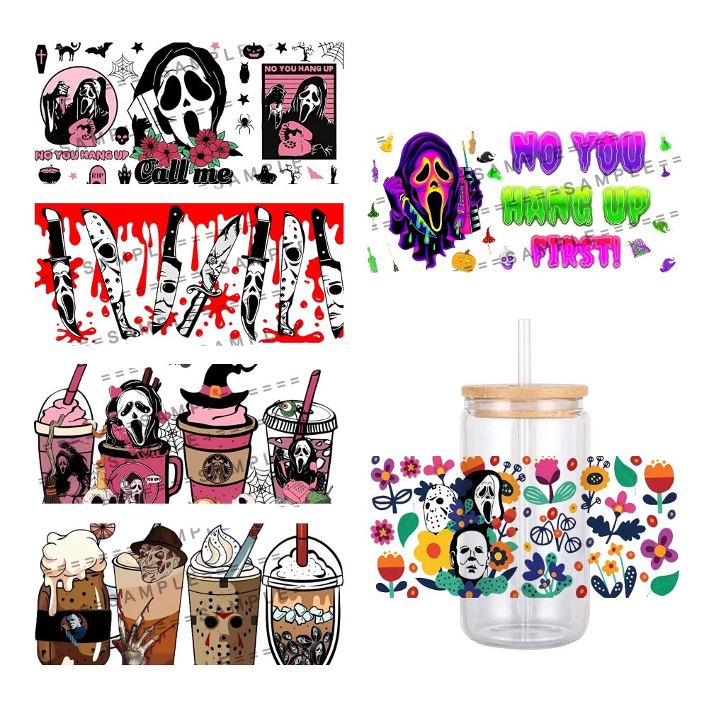 Cartoon Horror Movie Pattern UV DTF Transfer Sticker Waterproof Transfers Decals For 16oz Glass Cup Wrap Stickers