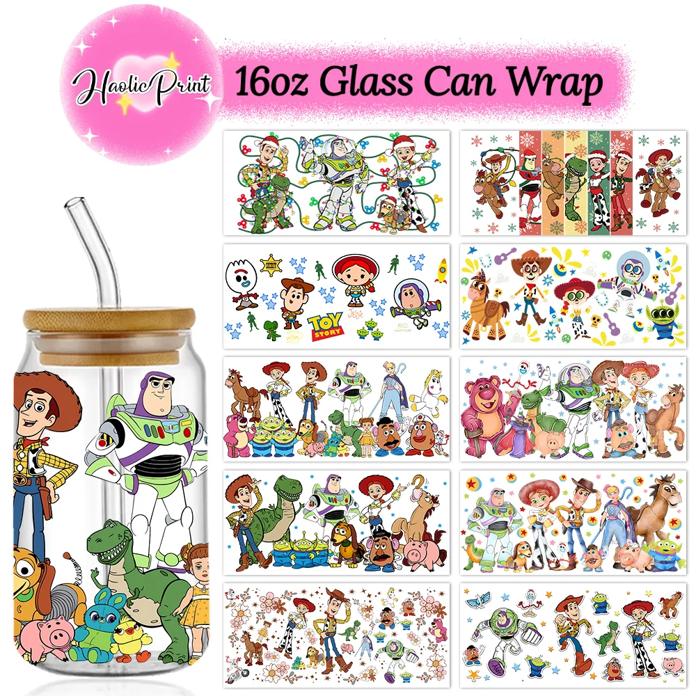 Toy Story UV DTF Cup Wrap 16oz Libbey Glass Can DIY Sticker Cartoon Selfadhesive Washable DIY Story Friends
