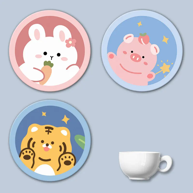 Cartoon Water-absorbing Coaster Heat-resisting Non-slip Drink Coffee Cup Pad Skid Insulation Pot Bowl Mat Kitchen Tableware Set