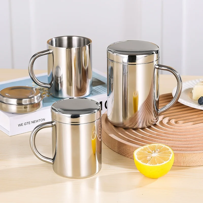 200-400ml Stainless Steel Coffee Double Walled Mugs with Lid and Handle, Metal Coffee & Tea Cup Mug, Camping Travel Office