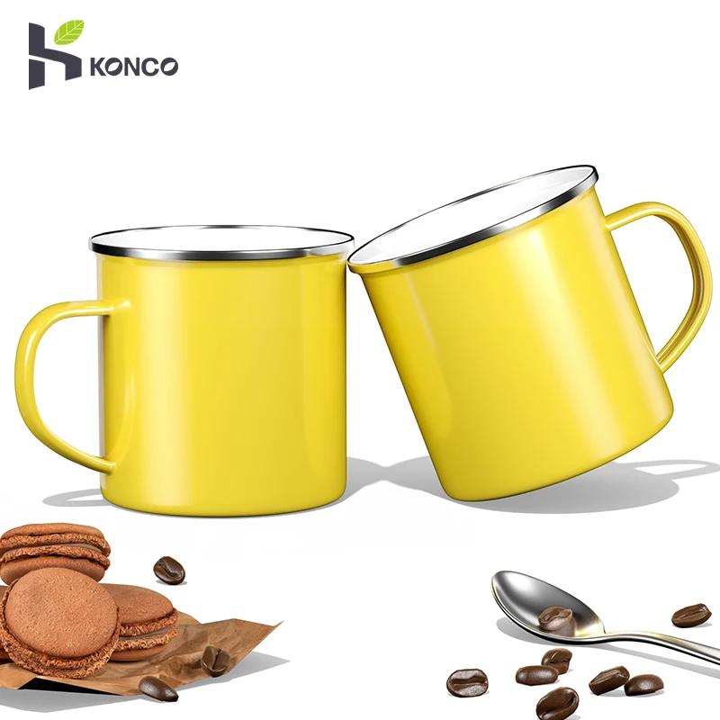 Pure Color Enamel Mug Vintage Coffee Cup Travel Tea Cup Water Milk Cups Portable Camping Mugs with Handle Kitchen Drinkware