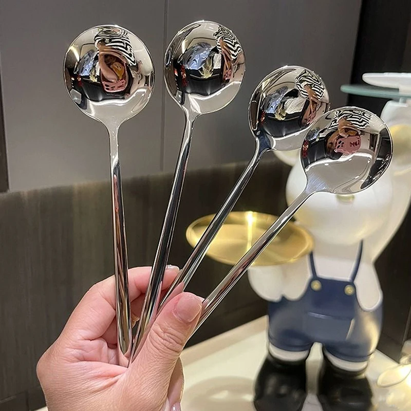 Stainless Steel Big Head Round Spoon Silver Dinner Serving Spoon Long Handle Dessert Spoon soup ladle Kitchen Tableware