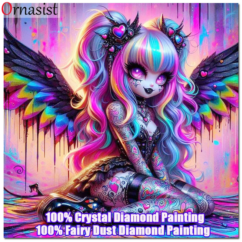 5D Fairy Dust Rhinestones Diamond Painting Set Elf Skull Girl Cross Embroidery Full Crystal Diamond Mosaic Art Home Decor Gift