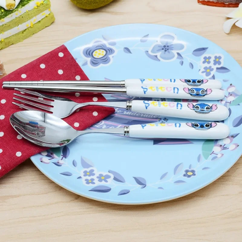 Cartoon Miniso Stitch Spoon Fork Chopsticks Anime Cutlery Sets Kawaii Fashion Kitchen Utensils Christmas Gift for Boys and Girls