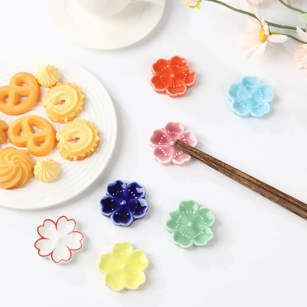 New Kitchen Spoon Sakura Blossoms Fork Chopstick Rest Sakura Blossoms Ceramic Chopsticks Holder Colorful