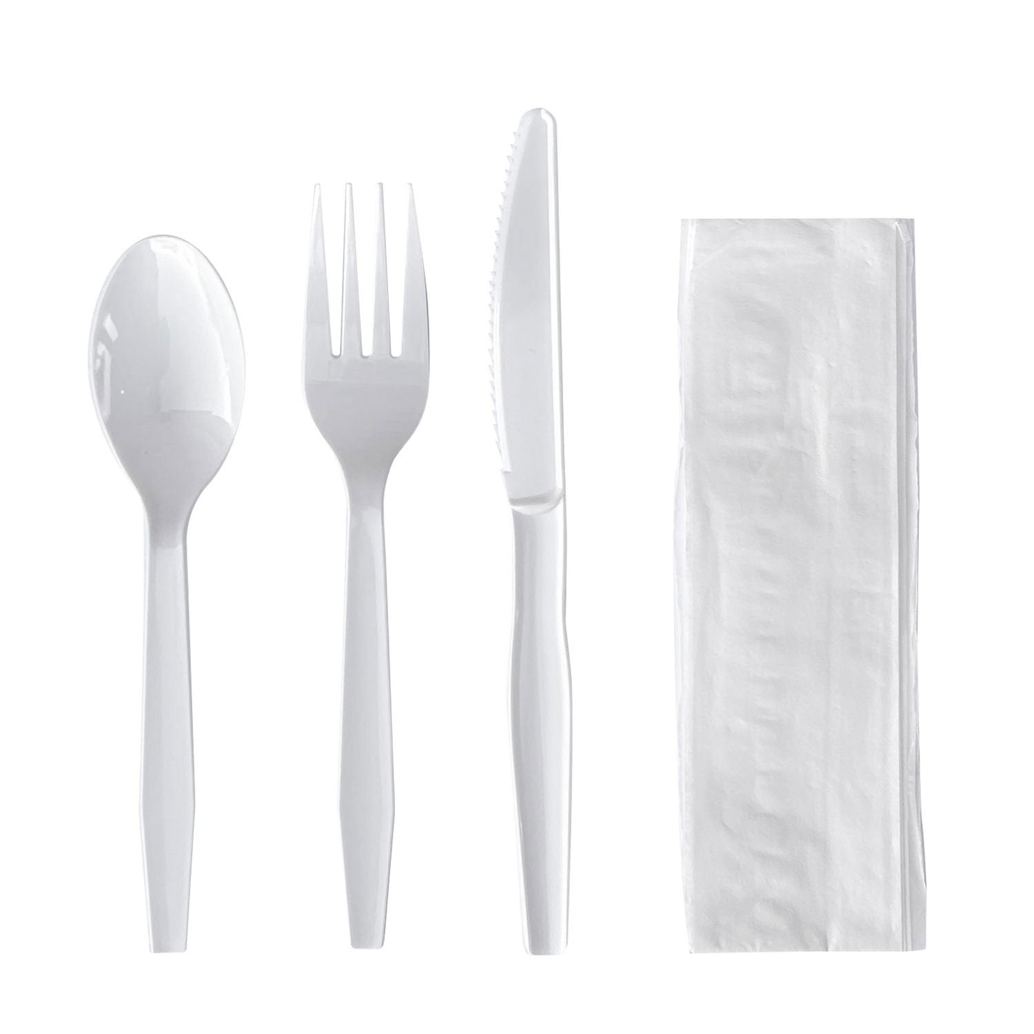 Boardwalk 4KITWHPS Four-Piece Cutlery Kit, Fork/Knife/Napkin/Teaspoon, Mediumweight, Polystyrene, White, 250/Carton - Case of 250 BWK4KITWHPS