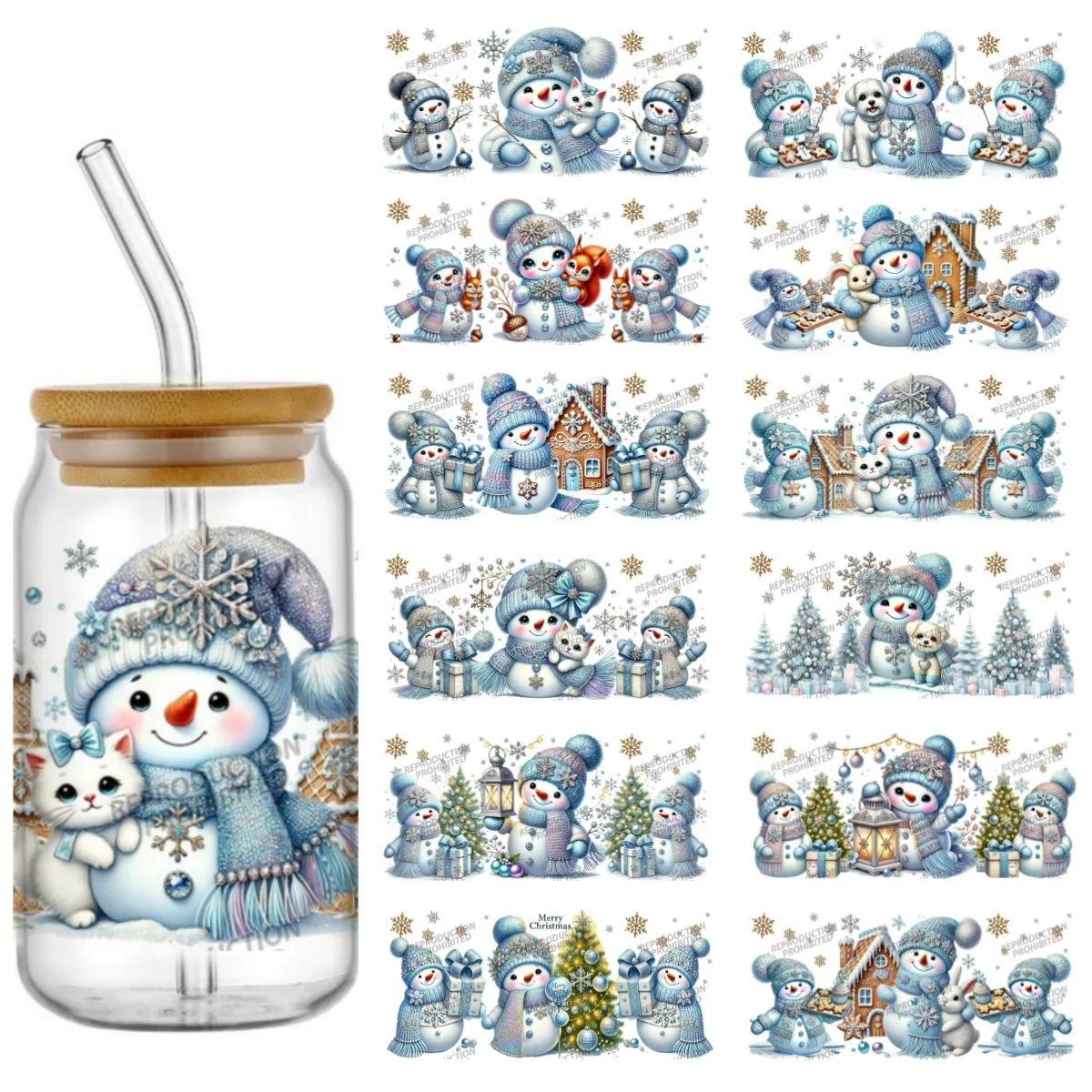 Miniso Snow Festival Snowman Design 16oz Sticker Cup Cool Personalize UV Wrap Transfer Sticker Selfadhesive Waterproof