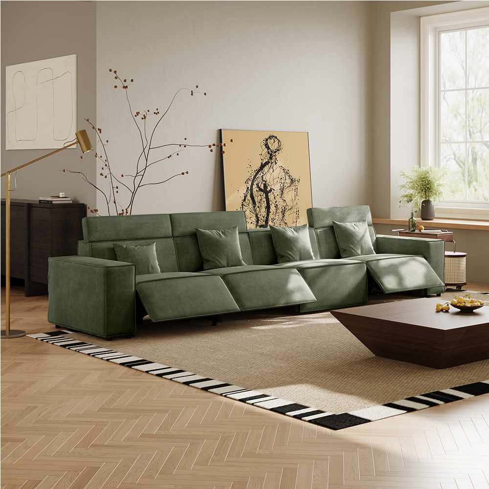 [Minimalist Sofa with Four Power Recliner Seats]Recline up to 135 degree with just one click, combining ultimate relaxation and convenience in one sleek, power recliner sofa for a perfect lounging experience.[Modular Couch Design]Customize your...