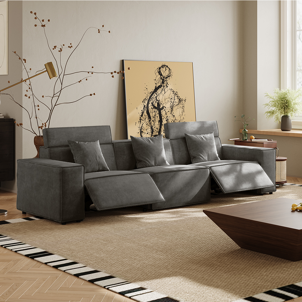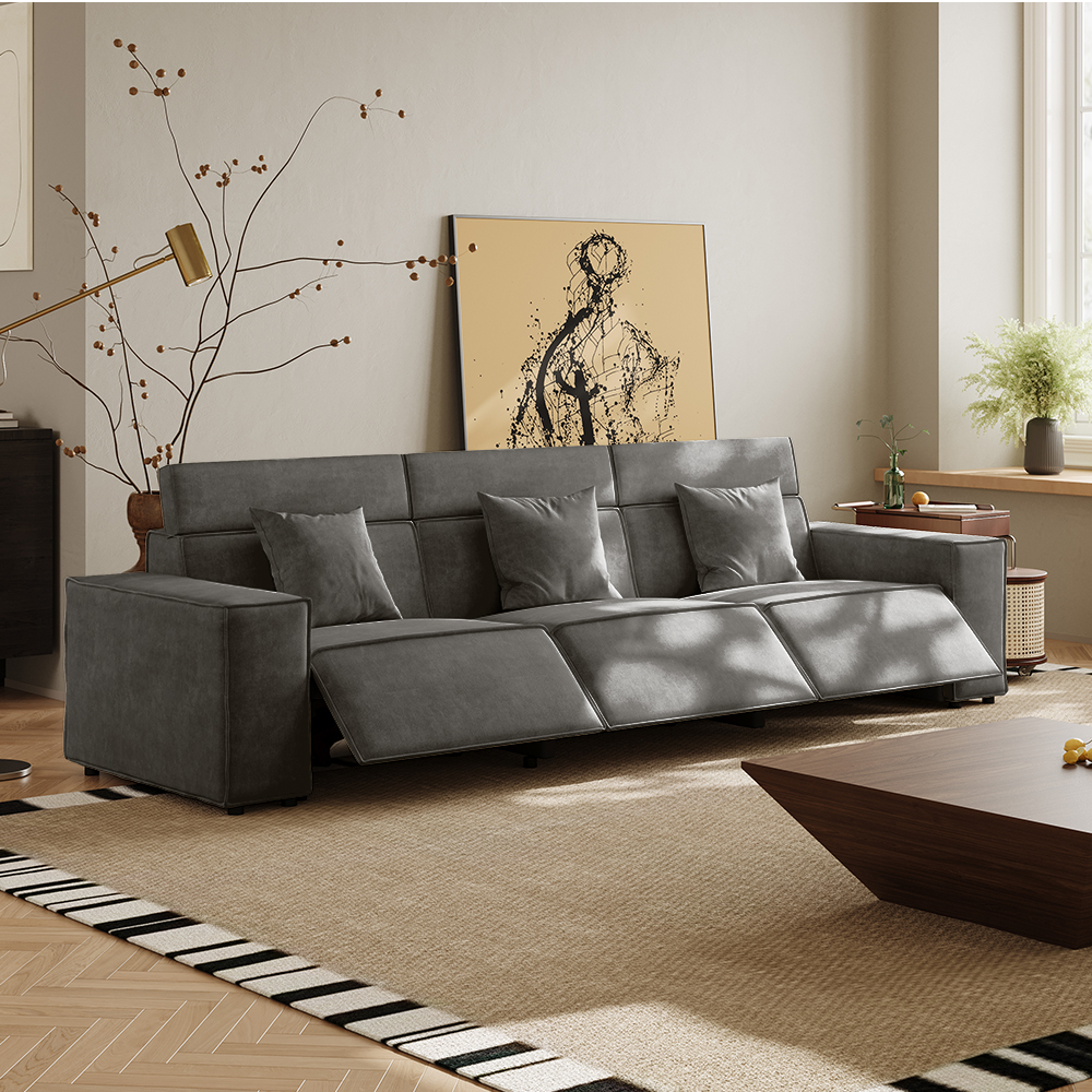 114.67"Minimalist Power Recliner Couch, 3 Recliners, Water Repellent, Scratch Resistant, Dark Gray