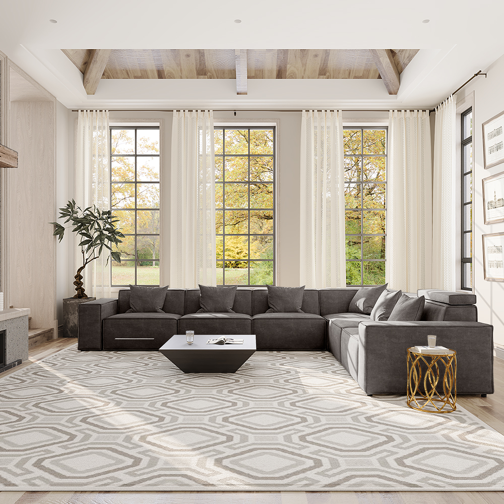 141.05" Minimalist Power Reclining L-shaped Corner Couch, 2 Recliners, Sofa with 4 Main Seats and 2 Extras, Fabric, Dark Gray