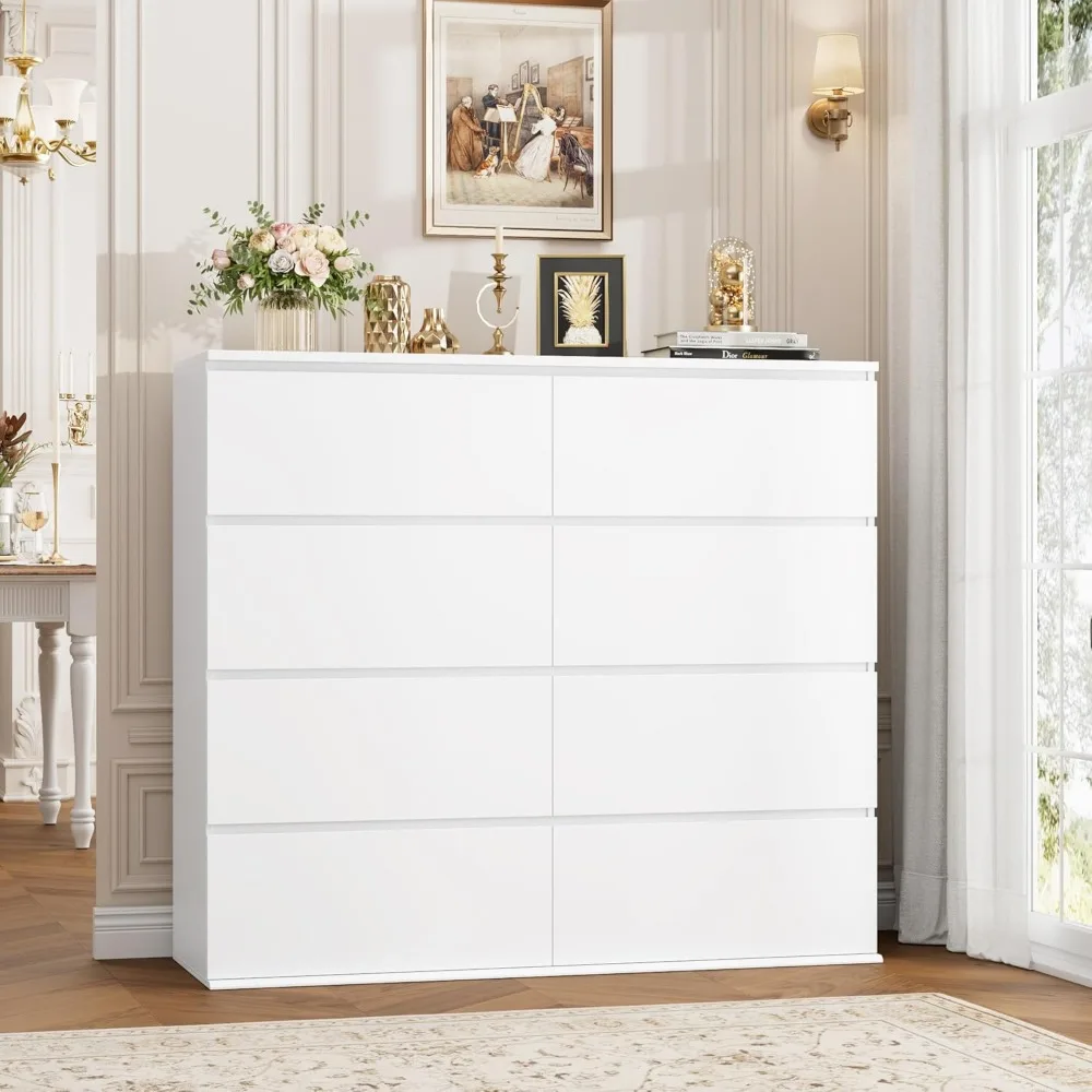 FINETONES 8 Drawer Dresser for Bedroom, White Dresser Double Chest of Drawers, Modern Wood Dressers with Deep Drawers for Living