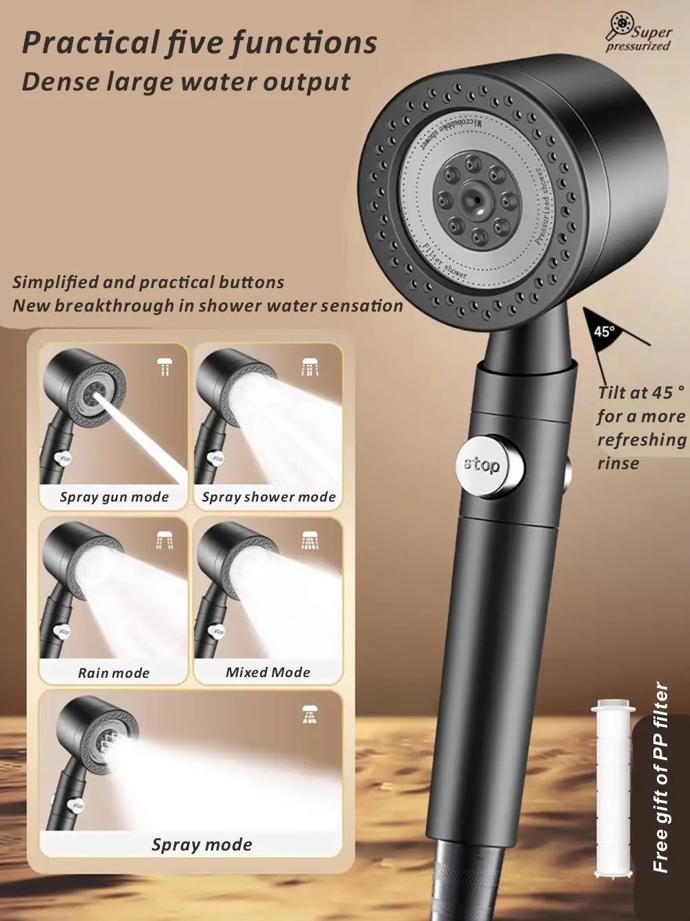 New Large Panel Black High Pressure Shower Head 6 Modes 9 IN 1 Spray with Filter Rain SPA Shower Faucet Bathroom Accessories