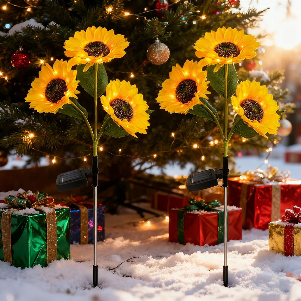 1pc/ 2pcs Solar Sunflower Garden Lights Outdoor, 3 Heads Solar Sunflower Lights LED Solar Path Lights for Home Porch, Yard, Lawn