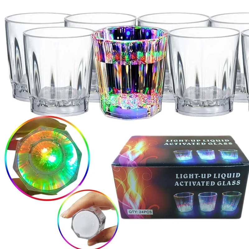 24pcs Light Up Cups LED Flash Shot Glasses for Party Glow Drinking Glasses LED Tumblers Glowing Party Shot Glass Wedding Deco