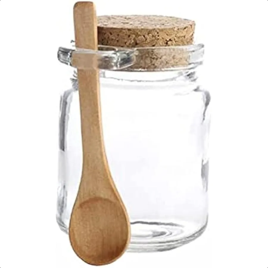 1Pcs 250ml 8.5oz Empty Clear Glass Jam Jar with Cork and Spoon Multipurpose Honey Candy Coffee Bath Salts Storage Canister Can  Read more