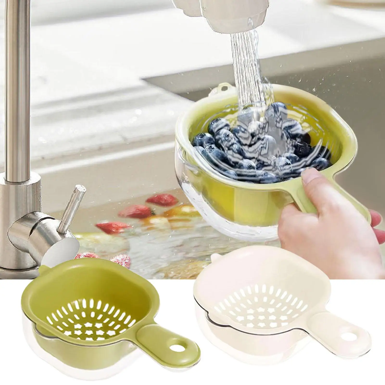 Fruit Strainer Food Draining Basket 2 In 1 Rotatable Strainer Colander with Handle for Washing Cleaning Berries Salad Vegetable
