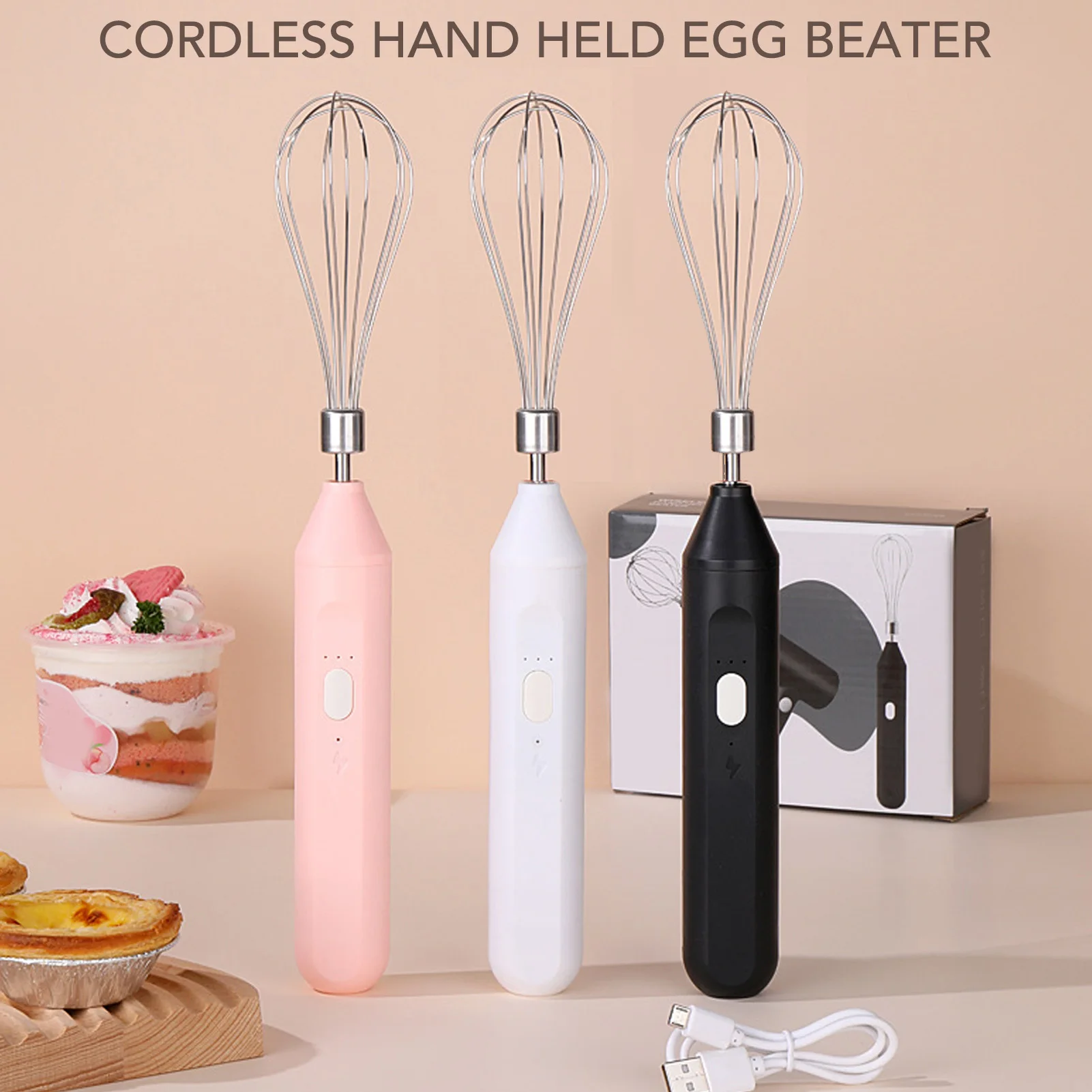 Electric Egg Beater Stainless Steel 3 Speeds Cordles Hand Mixer 1200mah Battery Handheld Foam Maker for Home Baking kitchen Tool