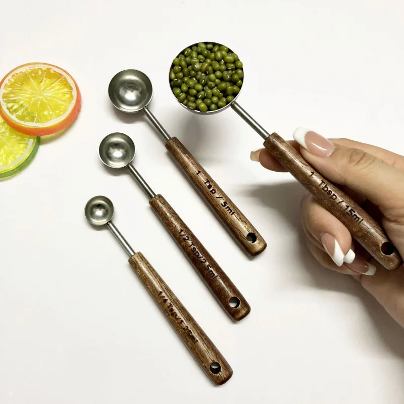 Oak Handle Stainless Steel Measuring Spoon for Milk Powder, Coffee Beans, Home Kitchen Baking Tool Measuring Scoop  Read more