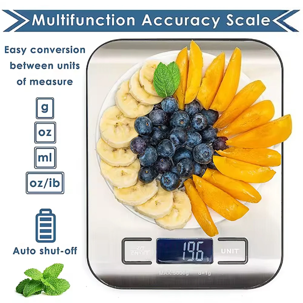 5kg/0.1g Digital Kitchen Scale Premium Stainless Steel Food Scales LCD Display Small Food Scale For Weighing Cooking
