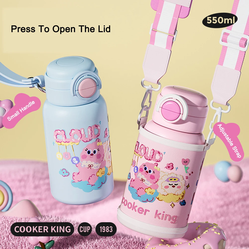 COOKER KING 550ML Large Capacity Insulated Cup Children's Straw Cup Cute Water Bottle Student Specific Water Cup For School Use