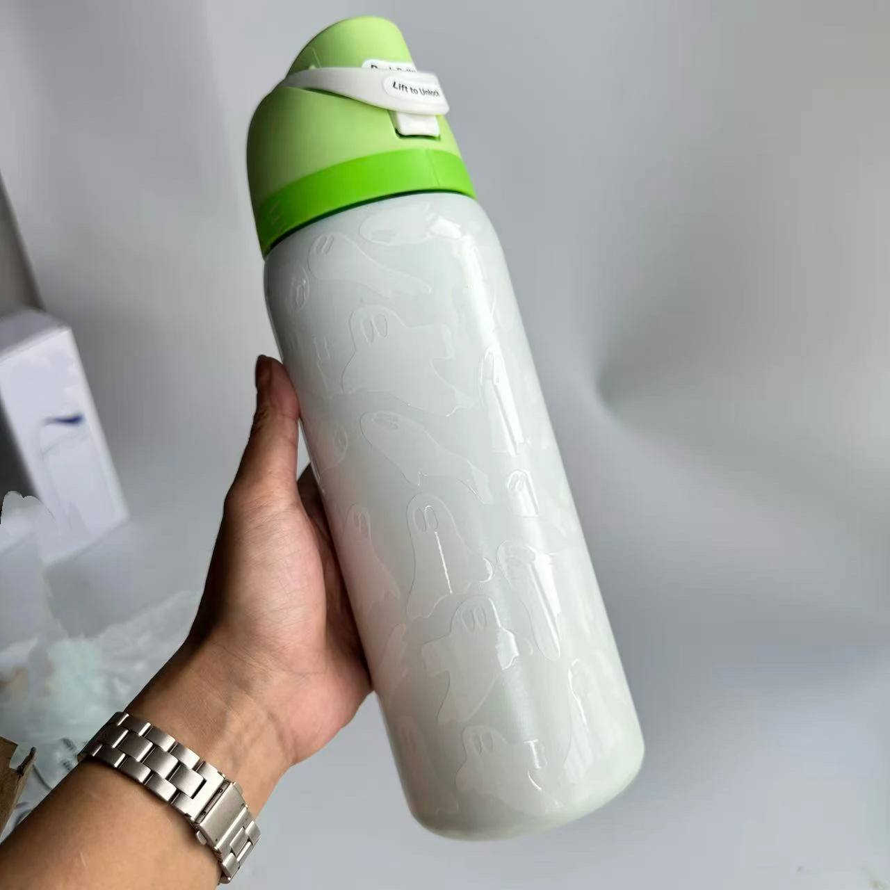 32oz Stainless Steel Insulated Straw Cup Cold Water Bottle Halloween Ghost Water Bottle Glow-In-The-Dark Cup Light-Up Cup