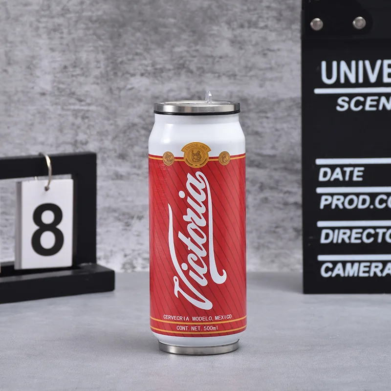 Coke Can Cooler! 500ML 304 Stainless Steel Insulated Cup with Straw, Suitable for Cold Beer/drinks, Essential for Home Kitchens