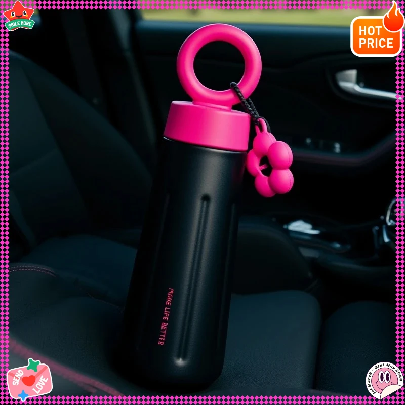 450ml insulated vacuum sports water bottle, suitable for cars, 316 stainless steel, unisex thermos cup with sunflower pendant
