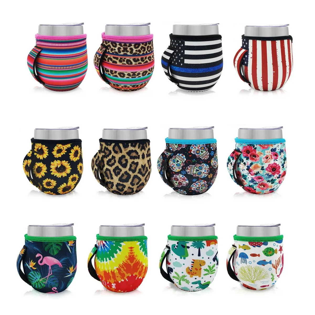 1/4Pack Reusable Neoprene Insulated Sleeves With Handle For 12oz Stemless Wine Glass, 16oz Regular /Wide Mouth Pint Mason Jars
