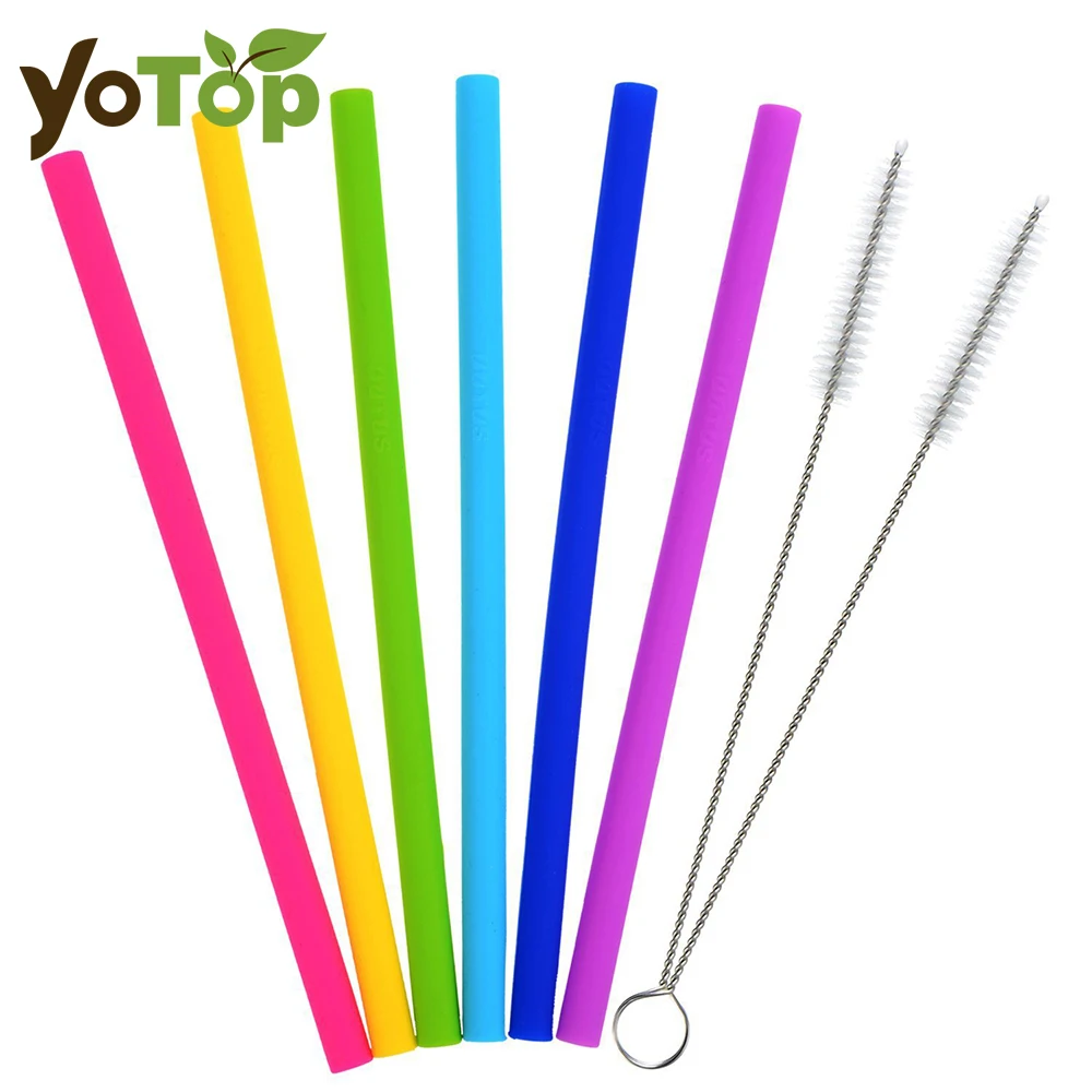 6 Pieces/Set Reusable Silicone Straws Set Extra Long Flexible Straws Colored Folding Straw Cleanable Bar Accessories  Read more