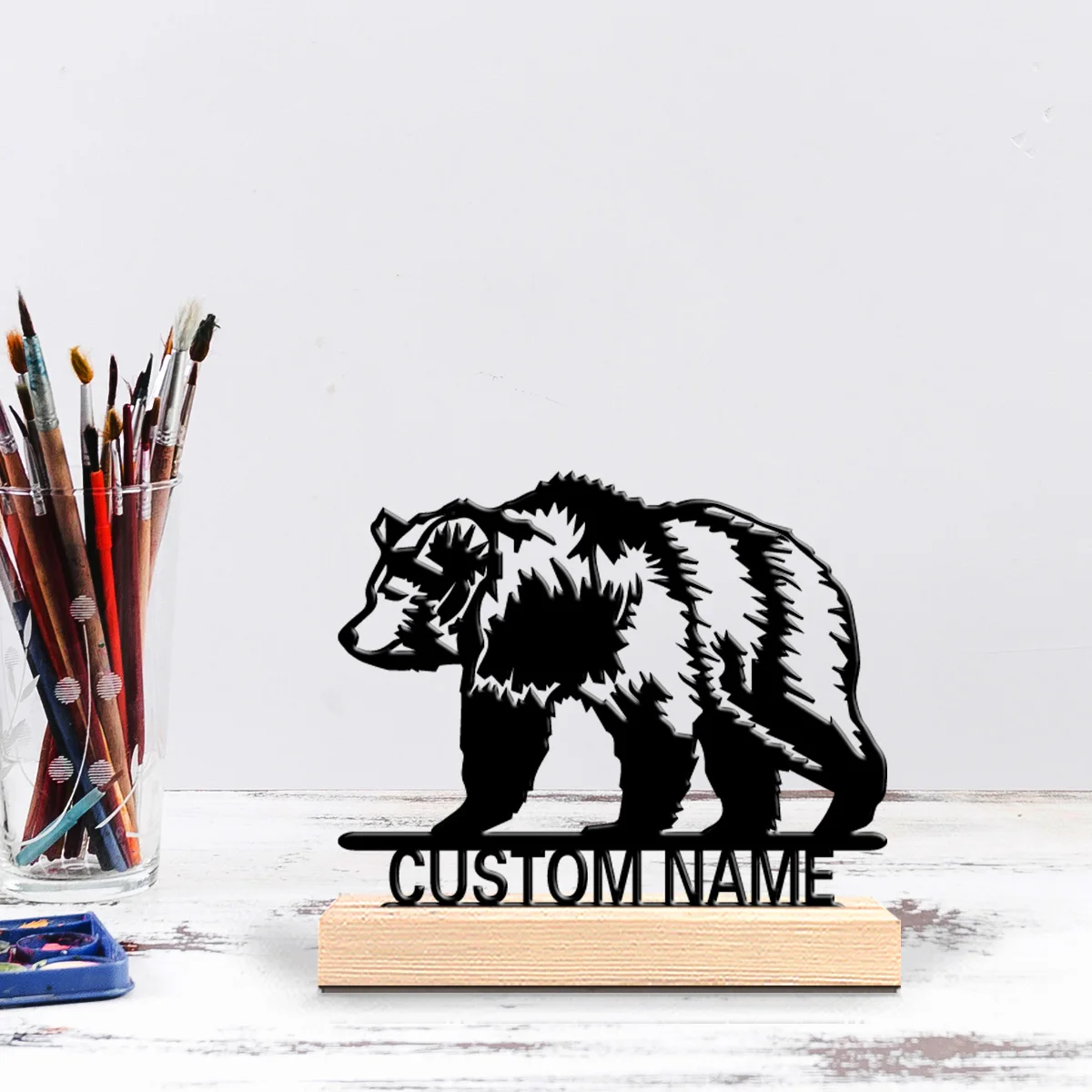 1pc Romantic Personalized Custom Toy bear Metal StatuesFantasy Desk Sculpture with Wooden Base, Ideal for Gamers, Book Lovers, M