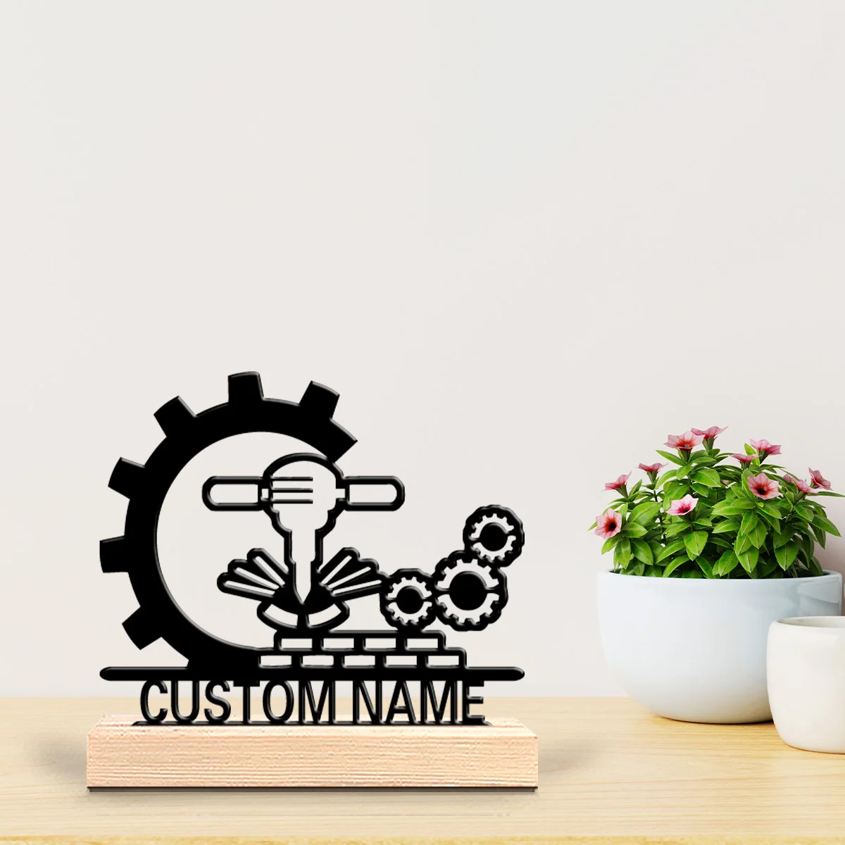 1pc Romantic Personalized Custom Industrial style Metal Statues Wooden Base Wall Decor for Living Room, Garage, Modern Industria