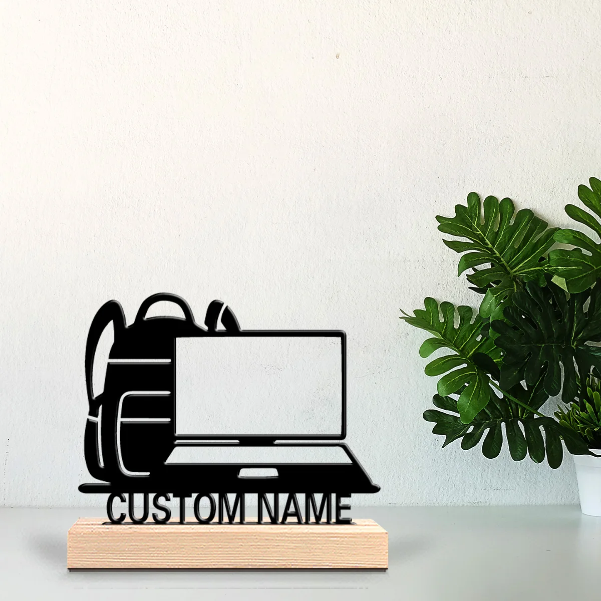 1pc Romantic Personalized Custom Laptop Metal Statues Science-Themed Wooden Base Decor for Doctors, Psychologists, Geeky Office