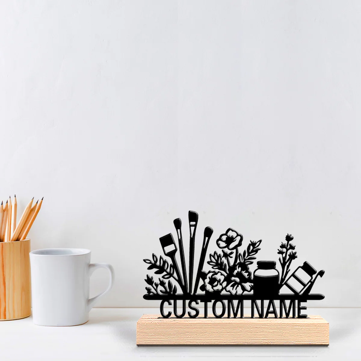 1pc Romantic Personalized Custom Paintbrush Metal Statues Artist’s Gift with Wooden Base, Perfect for Painters, Studios, Creativ