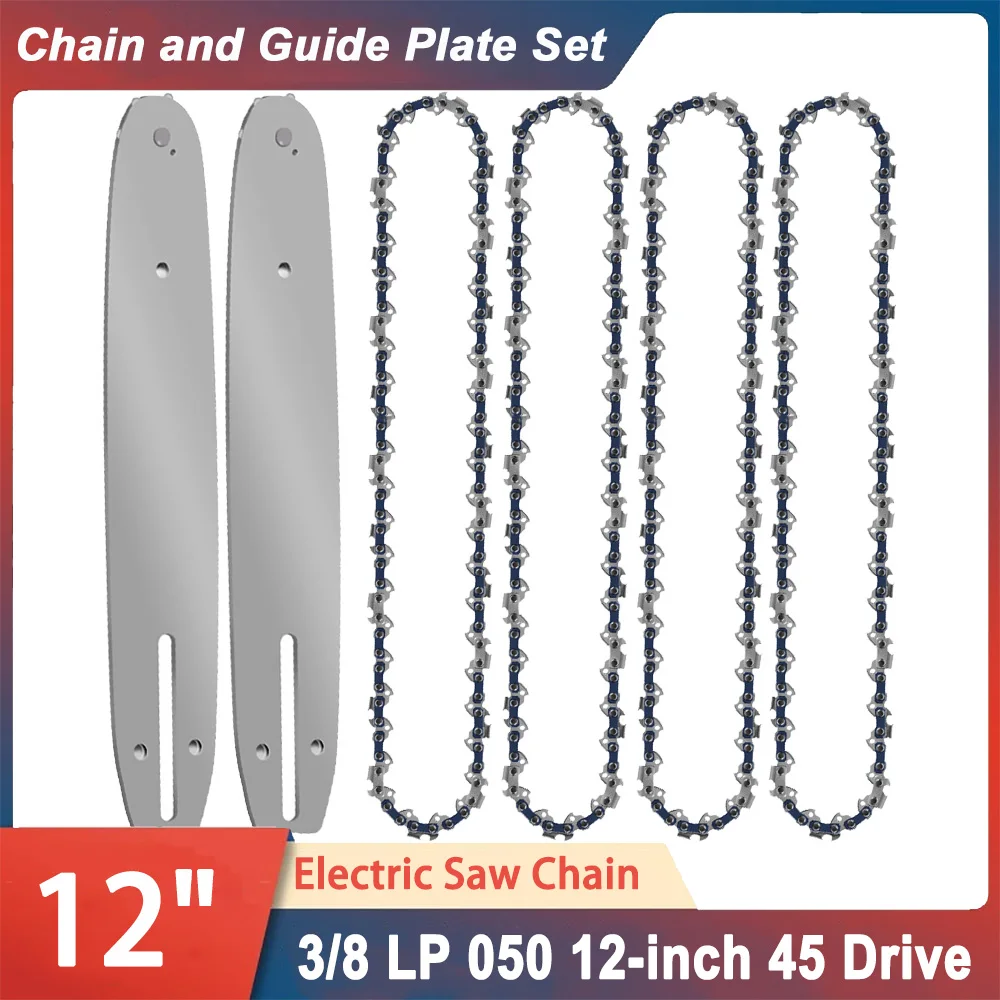 12" Guide Bar & 45 Link Chain Set 3/8"LP Pitch 0.050" Groove Width Rounded Teeth Alloy Chainsaw Components 12 Inch Electric Saw
