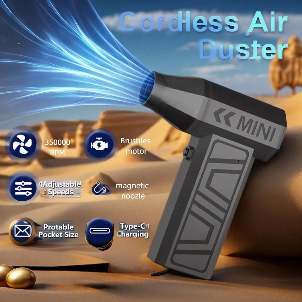 Car Blowing Snow Blower 350000RPM Type-C Charging Cleaning Blower Tool Turbo Jet Fan Electric Air Duster 4 Gears adjustable