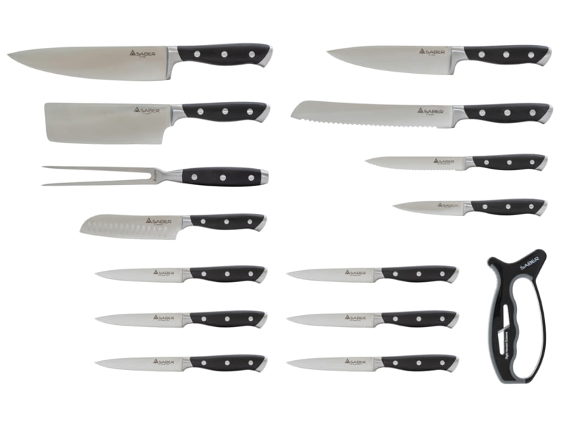 Smiths Saber Knife Set w/ Sharpener - 16 Pcs Black SP-50978