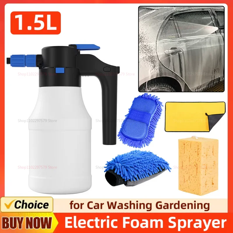 1.5L Electric Snow Foam Car Wash Sprayer USB Rechargeable Watering Can for Car Window Cleaning and Exterior Vehicle Detailing