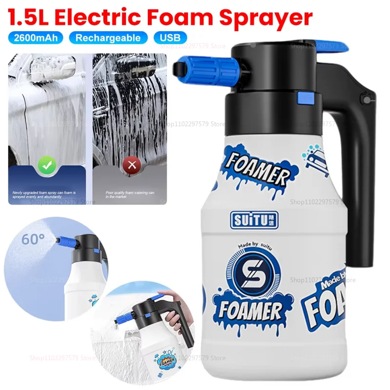 Rechargeable 1.5L Electric Snow Foam Car Wash Sprayer USB Watering Can for Car Window Cleaning and Exterior Detailing  Read more