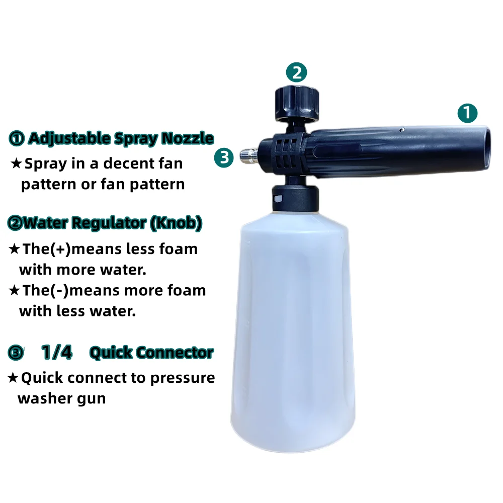 Snow Foam Cannon with 1/4 Inch Quick Connect 700ml Bottle Use to be Pressure Washer Sprayer Gun, Car Wash Soap Attachment Kit, F