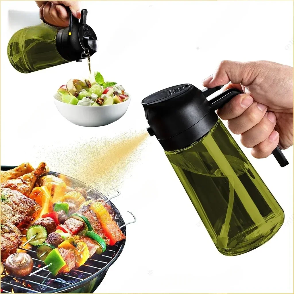 2-in-1 Dark Glass Oil Sprayer 470ml Spray Bottle Olive Oil Dispenser Black Lightproof Oil Sprayer for Cooking Salads